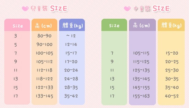 部分韓國供應商不會詳列童裝貨品尺寸,以下是一般韓國童裝的尺碼參考: